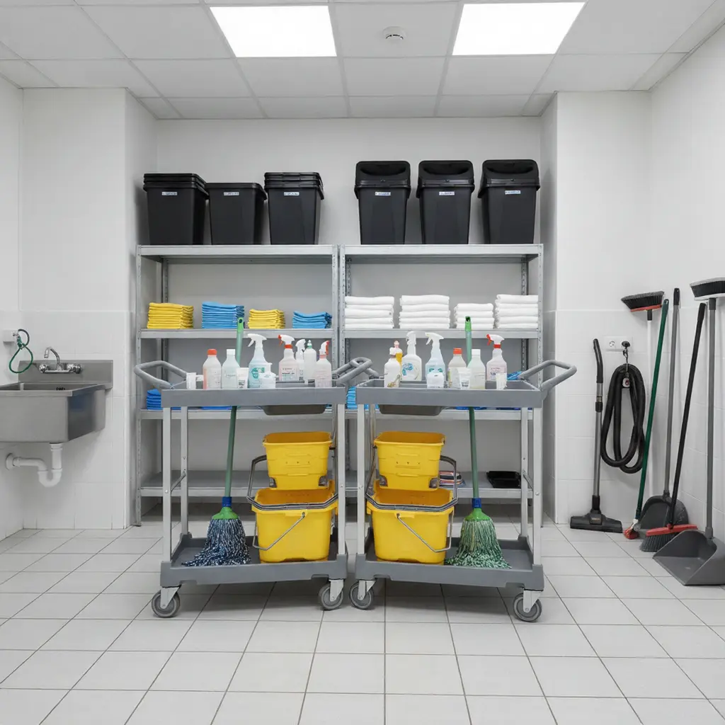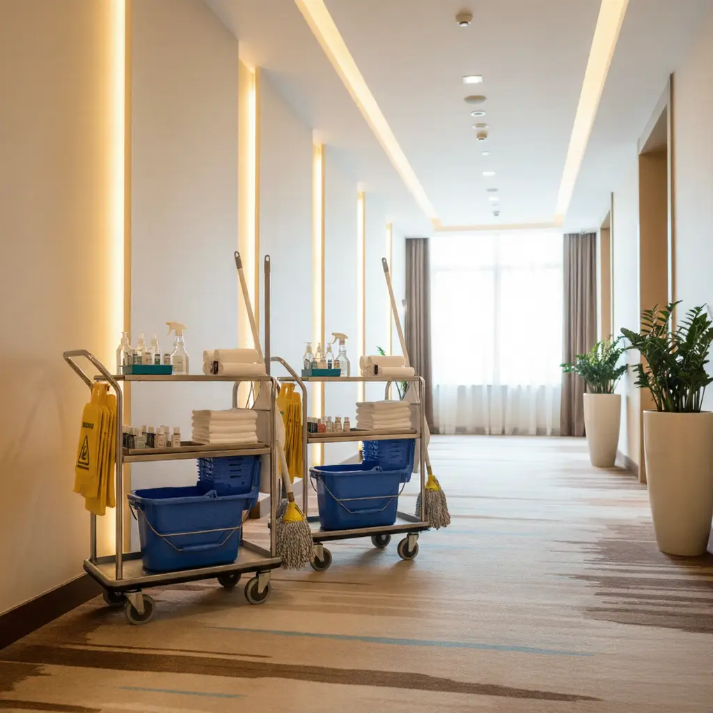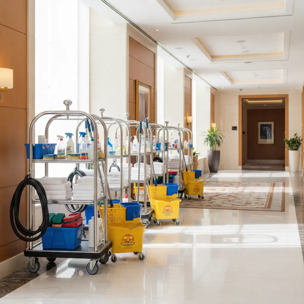 - Multi-functional housekeeping trolleys for daily room cleaning