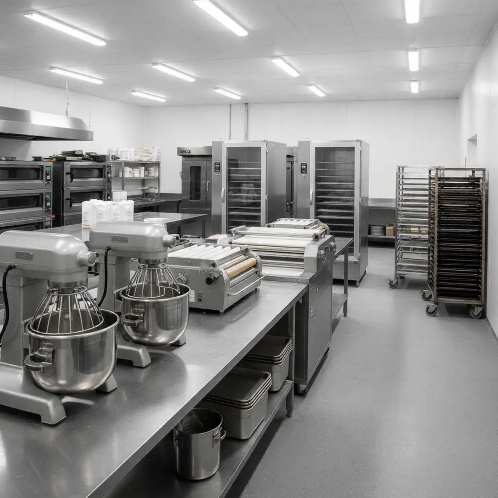 Baking Equipment: Mixers, dough machines, proofers, fermentation cabinets, baking trays, pans, molds, cooling racks, and storage solutions to ensure consistent results and quality.